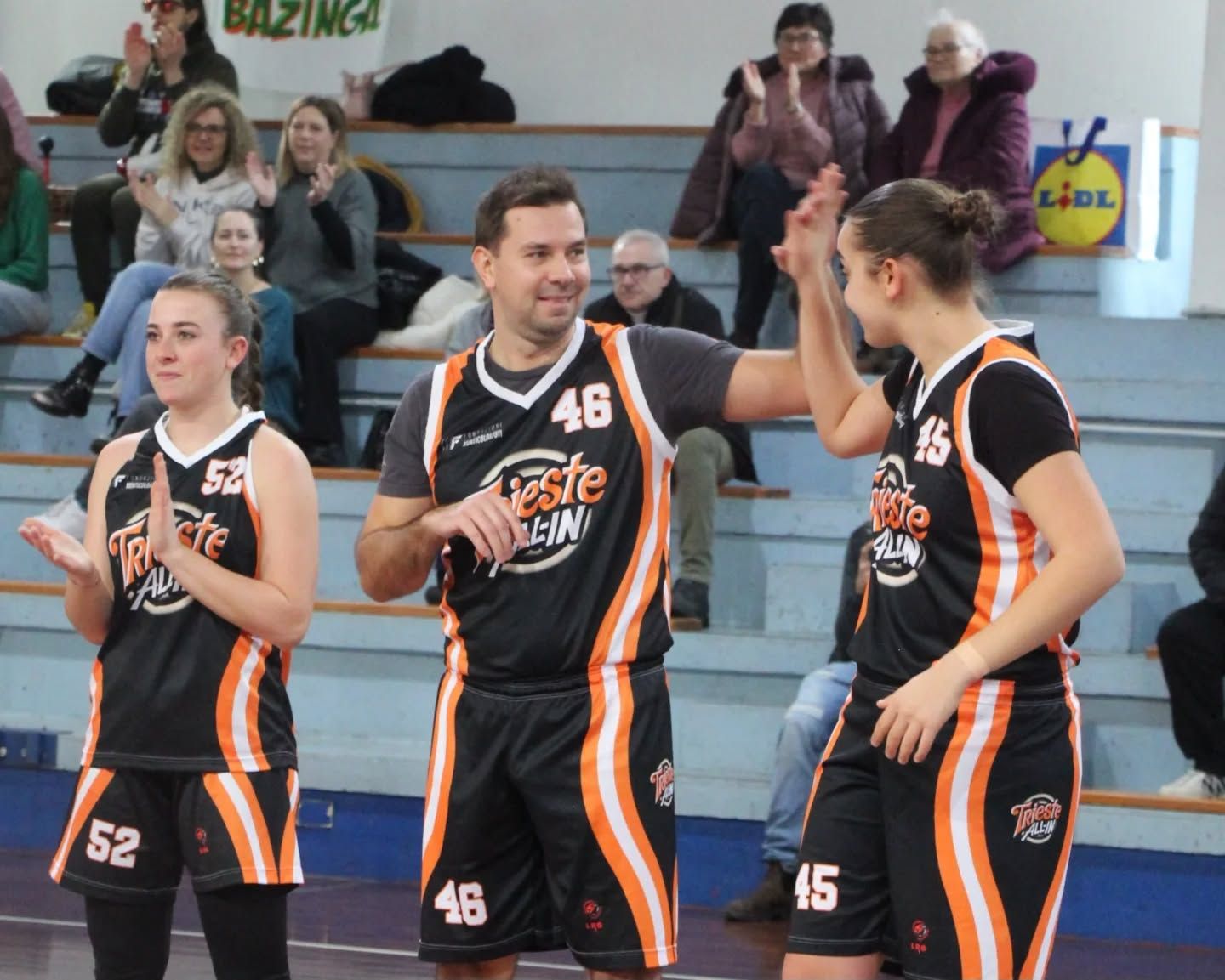 Si parte con il Bazinga aggressivo, ma Trieste All-In dimostra subito di saper soffrire e soprattutto di saper difendere. Il piano è chiaro: tenere lontano il Bazinga dai propri pivot e sporcare ogni linea di passaggio. Missione compiuta, visto che il primo tempo si chiude sul 22-35 per Trieste All-In. Vantaggio costruito con pazienza, intensità e una difesa che concede pochissimo nel pitturato. Partita nervosa, sì, ma Trieste lucida.