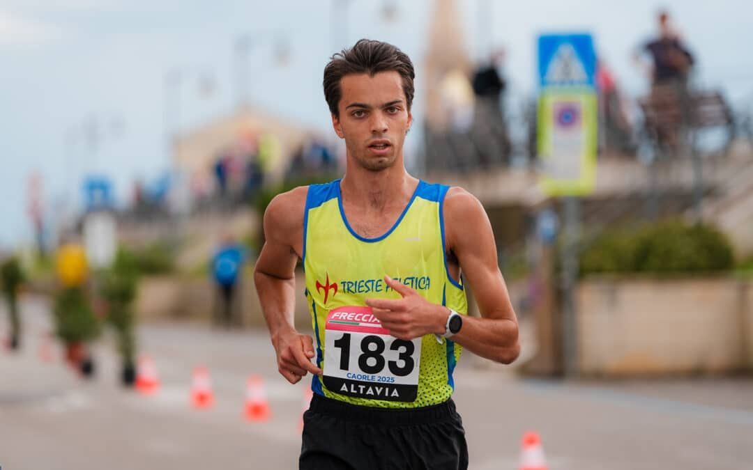 Al centro della giornata c’è il brillante risultato di Alessio Coppola, atleta triestino cresciuto nella Trieste Atletica e oggi professionista in forza al gruppo sportivo militare Fiamme Oro di Padova, che ha conquistato il titolo italiano juniores nei 10 km con il tempo di 40’59”. La sua prestazione testimonia la progressiva maturazione tecnica e la capacità di competere ai massimi livelli nazionali. Un altro risultato di primo livello, che inorgoglisce la società gialloblù che lo ha visto crescere anno dopo anno.