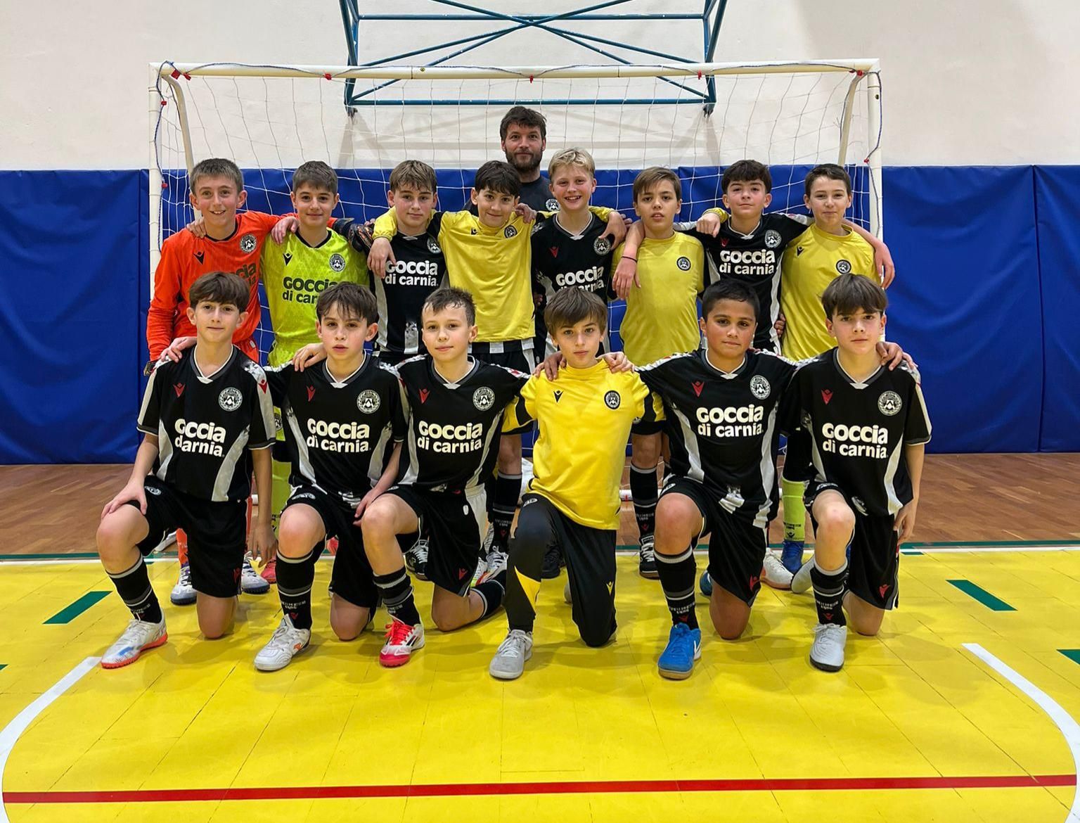 Vittoria dell'Udinese nella finale regionale del torneo Under 13 Futsal Elite di calcio a cinque, organizzata nella palestra del Sant'Ignazio a Villa Ara. La squadra allenata da Maiero ha avuto la meglio sulle altre finaliste (San Luigi, Cjarlins Muzane e Nuovo Pordenone), aggiudicandosi tutte le partite. Il gruppo bianconero, allenato da mister Maiero, era composto da Perisan, Argiolas, Bevilacqua, Tantone, Biancuzzi, Conte, Bosco, Campana, Fontanot, Burato, Vignali, Severino, Hoxha. L'Udinese si era qualificato alla fase finale, così come il Cjarlins Muzane, dal secondo raggruppamento della prima fase, giocato sempre a Villa Ara con in campo anche Sant'Ignazio, Pordenone Calcio a 5 e Liventina San Odorico. Dal primo gruppo, andato di scena a Opicina, si sono qualificati San Luigi e Nuovo Pordenone che hanno avuto la meglio su Polisportiva Opicina, Fontanafredda e Maccan Prata Calcio a 5.