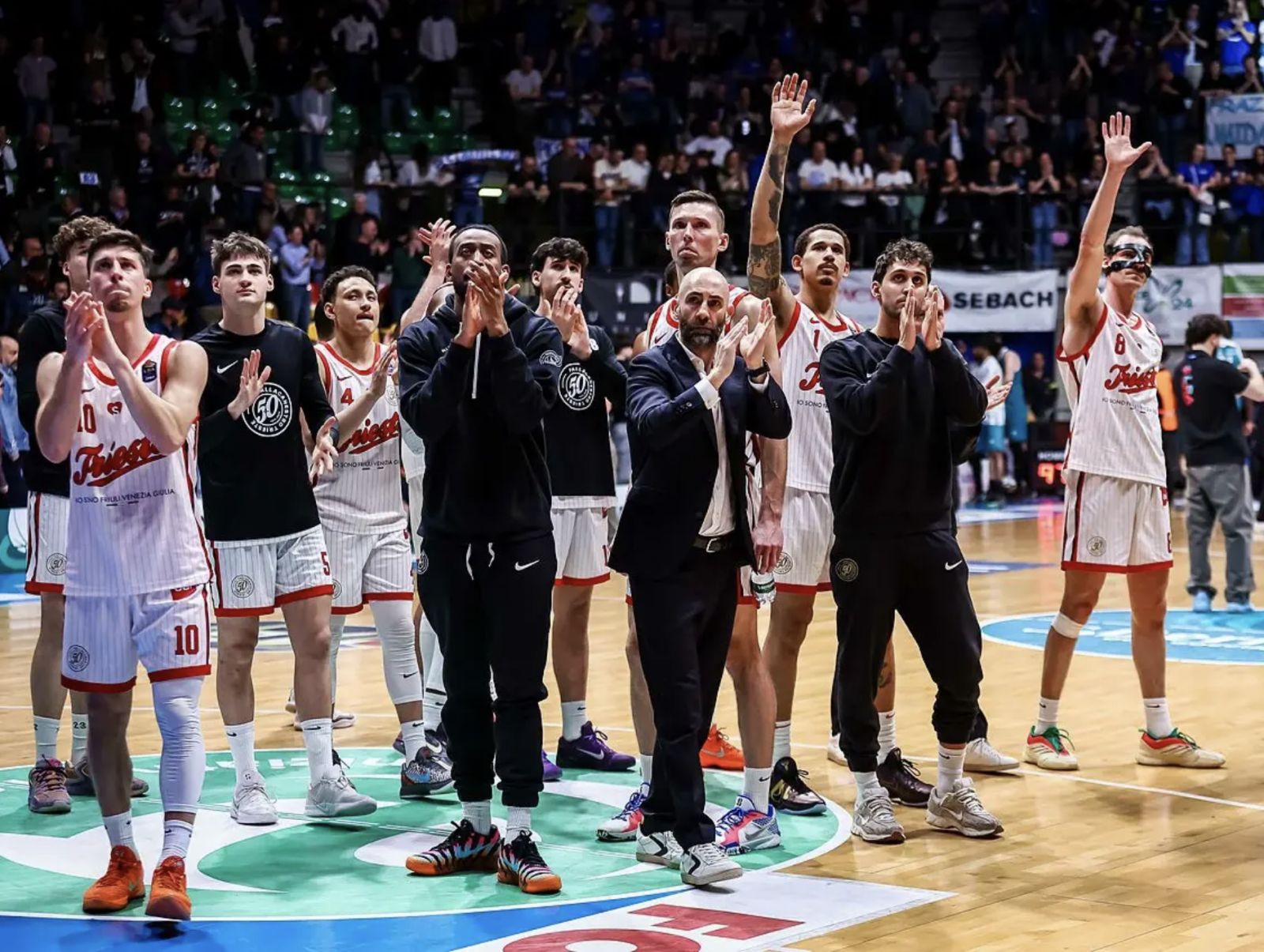 Sarà la non certo idilliaca situazione dell’infermeria che ha vessato a lungo la squadra, così come le pesanti voci di un domani tutto da scrivere relativo a un titolo sportivo spostato dall’ombra di San Giusto a quella del Colosseo. Ma assistere, per l’ennesima volta in questa stagione, a quaranta minuti di una ingiustificata “morbidezza” in campo che include una rincorsa all’avversaria praticamente già dai primi minuti, con annessa incapacità a difendere bene per due azioni di fila e ad attaccare il canestro altrui senza accontentarsi di un compitino che spesso si tramuta in tiri da tre rapidi in transizione, fa capire che i peccati originali che da sempre hanno accompagnato una squadra potenzialmente con tanto talento nei singoli, ma mai realmente quadrata per definirsi una vera big, finiscono per essere un fardello che ci si dovrà portare appresso sino alla fine. E ciò che è peggio, c’è anche una fiducia da parte dei tifosi che vacilla sempre più, sicuramente “condita” dai timori che fra qualche mese non si parlerà più di massima serie, bensì qualcosa di realmente diverso.