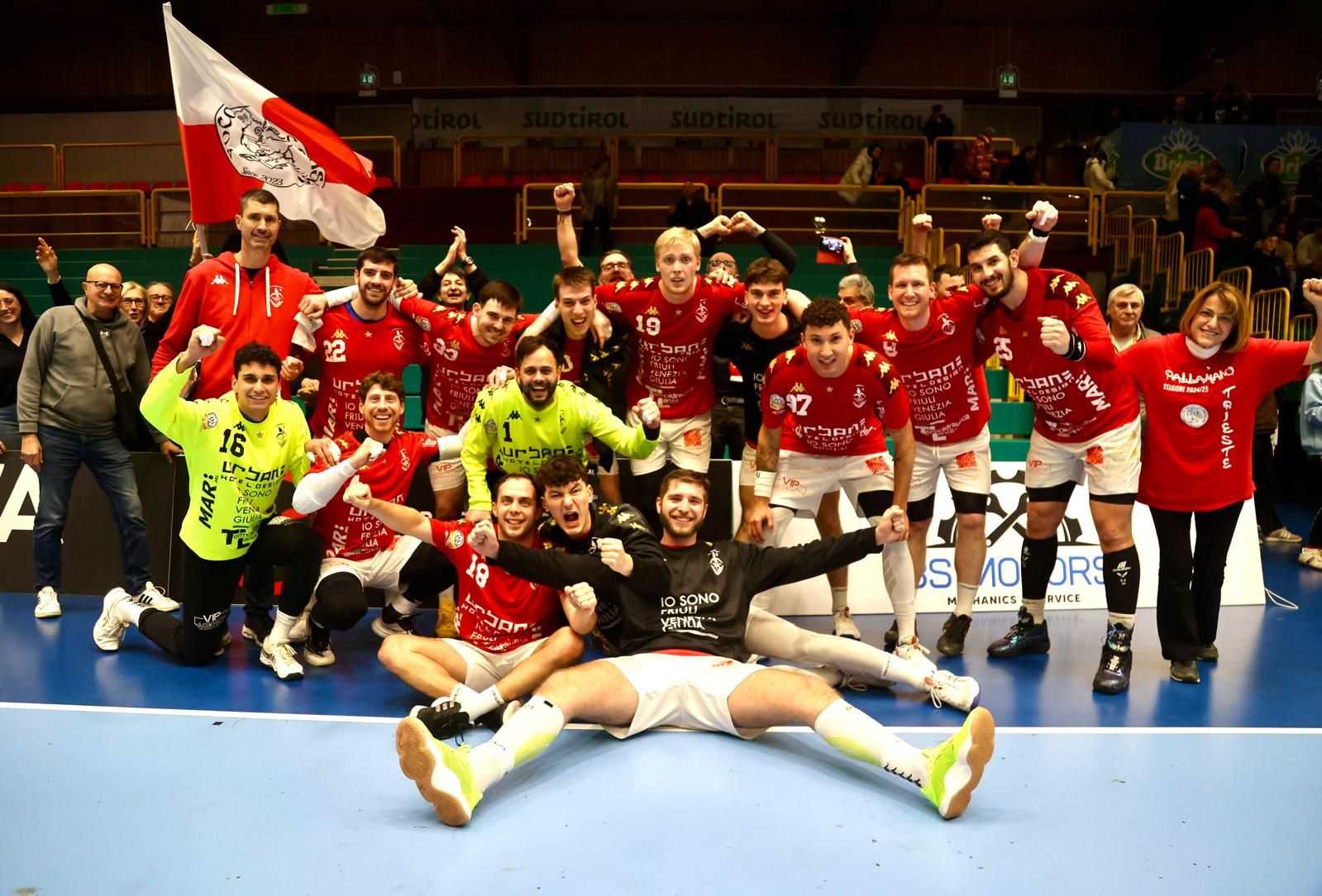 Bendjilali trova il -2 in apertura di ripresa su assist di Lindström, il pivot algerino si ripete qualche minuto dopo ancora in pivot per il 21-19, gap che si riduce sulla rasoiata dai nove metri di Esparon al 33’. La “volante” di Coppola e la risposta di Lindström sull’altro lato del campo consegnano il 22-21 con Trieste che perde Bendjilali per due minuti, ma non la compattezza in attacco: Urbaz fa doppietta per l’ennesimo -1 (24-23 al 37’), rientra Bendjilali ed è parità a quota 25 due minuti più tardi. Il buon momento biancorosso continua: Postogna si supera tra i pali, Lindström piazza il sorpasso al 40’ ed Esparon dai sette metri mantiene il vantaggio minimo sul 27-28 a un quarto d’ora dalla fine. Brixen soffre ma riagguanta il pari con Della Vecchia, Vanoli, Urbaz e Hubert la ricacciano subito indietro (29-32 al 50’, timeout biancoverde). Coppola e Costa fanno ripartire i padroni di casa in attacco, ma l’uno-due di Esparon e Vanoli mantengono il +3 (32-35 a tre dal termine). La parata di Postogna e il rigore segnato da Esparon chiudono definitivamente i conti con un paio di minuti ancora da giocare: Trieste torna meritatamente alla vittoria.
