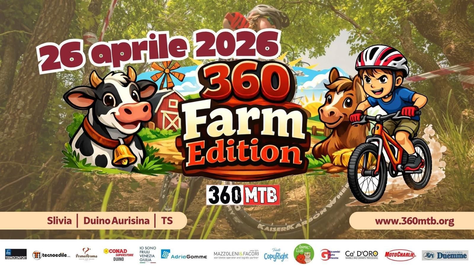 Un ritorno alle gare in grande stile e con un'identità tutta nuova. L'Associazione 360Mtb annuncia ufficialmente la prima edizione della "360 Farm Edition", competizione di mountain bike inserita nel calendario della Federazione Ciclistica Italiana, che si disputerà domenica 26 aprile. L'evento rappresenterà una tappa fondamentale del prestigioso circuito regionale “24° Trofeo Junior Bike Off Road Fvg”.