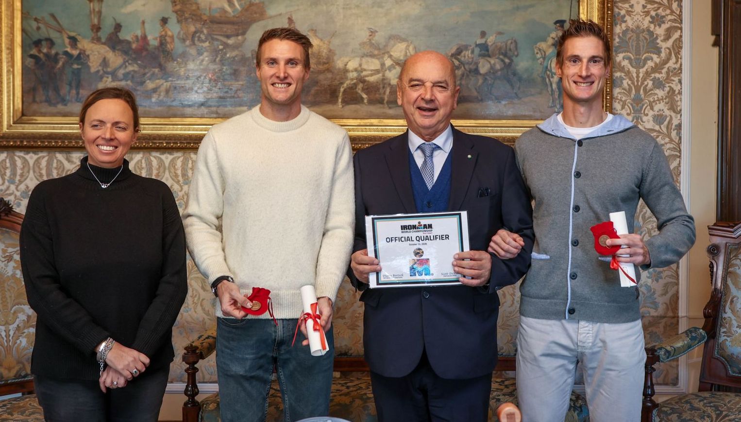 "Ad Andrea Mauri e Moreno Mauri con le più sentite congratulazioni per gli importanti risultati raggiunti nell'impegnativa disciplina del triathlon e con l'augurio di ottenere sempre maggiori successi": con questa motivazione stamattina il sindaco, Roberto Dipiazza e l'assessore allo Sport, Elisa Lodi, hanno conferito un piccolo riconoscimento ai due triatleti, che affronteranno la gara del mondiale triathlon Ironman 2026, organizzato a Kailua-Kona (Hawaii).