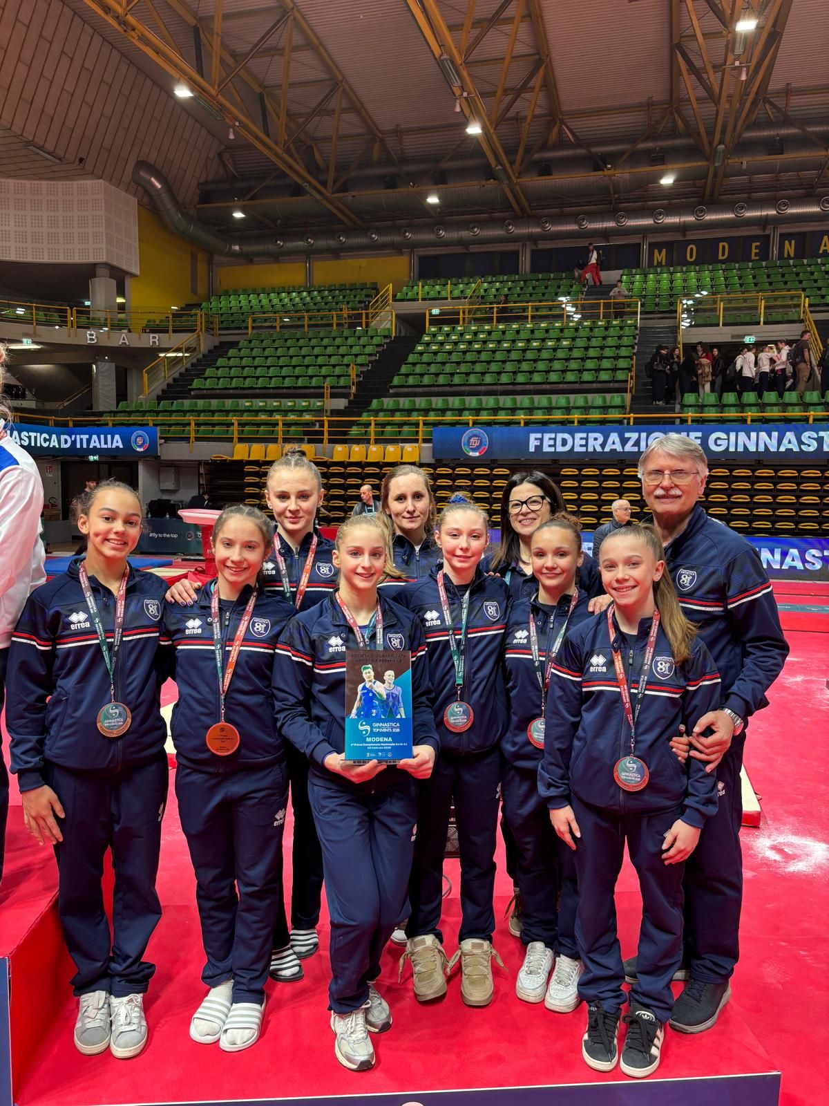 La squadra dell’Artistica ’81 sale subito sul podio nella prima prova della nuova stagione di serie A1, nel quale la società milita da ben 24 anni consecutivi. La prima competizione in calendario si è tenuta a Modena e il gruppo si è classificato al terzo posto dopo una giornata eccellente.Il team quest’anno è composto da Emma Puato, Benedetta Gava, Anthea Sisio (in prestito dalla Ginnastica Aiace), Emma Furlan, Matilde Bianco, Lisa Emili e una nuova atleta, Alessia Comin. Allenatori Diego Pecar, Teresa Macrì, Carolina Pecar e Tea Ugrin.