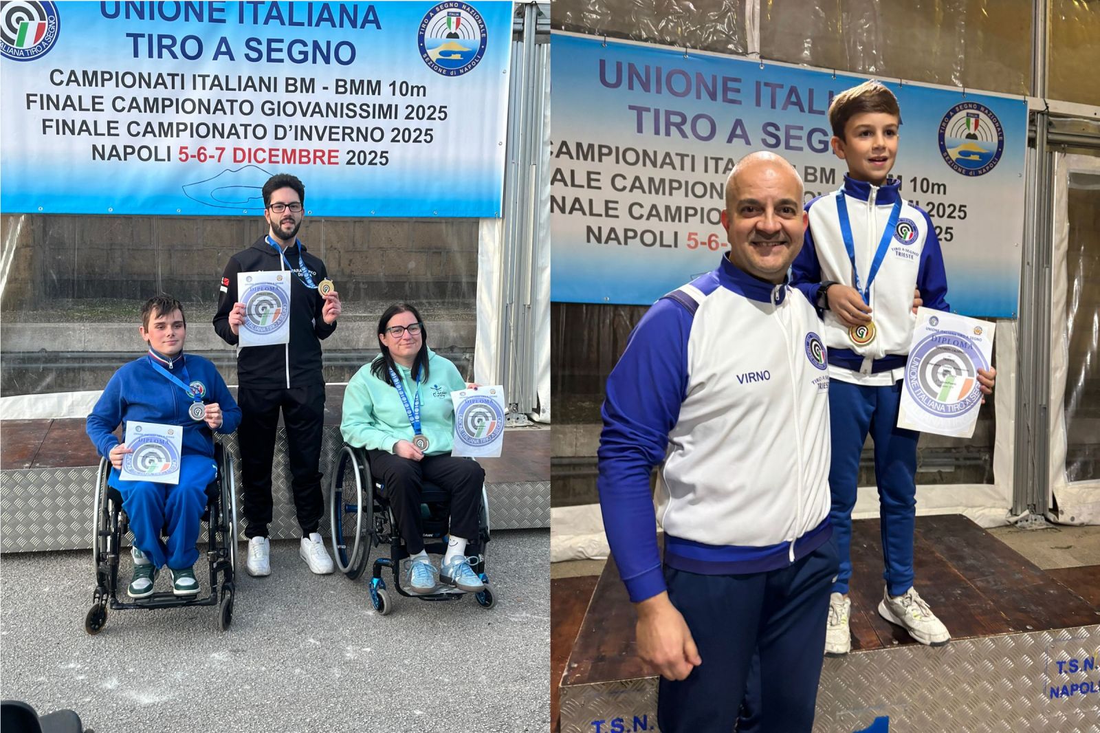 Il 6 e 7 dicembre inoltre si sono disputati i Campionati Italiani Giovanissimi e le Finali del Campionato d’Inverno presso il Tiro a Segno di Napoli. Nella prima giornata di gara protagonista Tommaso Starec, impegnato nella carabina paralimpica R3-R5. Anche in questa occasione il giovane campione triestino non ha deluso le aspettative con una prova di altissimo livello e un secondo posto finale dopo una competizione serratissima. Anche la seconda giornata ha regalato soddisfazioni per il Tiro a Segno di Trieste nella Finale del Campionato Giovanissimi che vedeva impegnato il tiratore più giovane del gruppo. Benjamin Calderon ha vinto il titolo Italiano nel tiro libero senza appoggio con una gara condotta in testa alla classifica dall’inizio alla fine.
